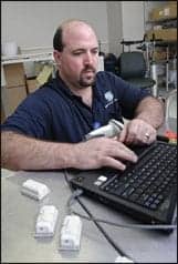 | Senior BMET Richard Wheeler keys information into the RadarFind database to track assets. |